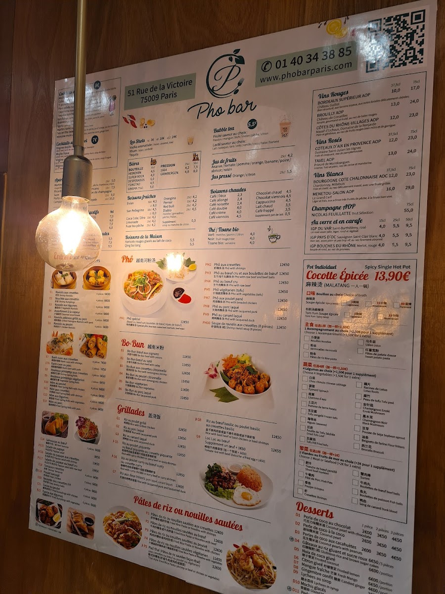 Introducing Phobar, a hidden gem nestled at 51 Rue de la Victoire in the heart of Paris. This inviting Vietnamese restaurant boasts a menu rich with traditional favorites, including pho, bo bun, and crispy spring rolls. The atmosphere is bright and impeccably clean, creating a warm and welcoming dining environment.